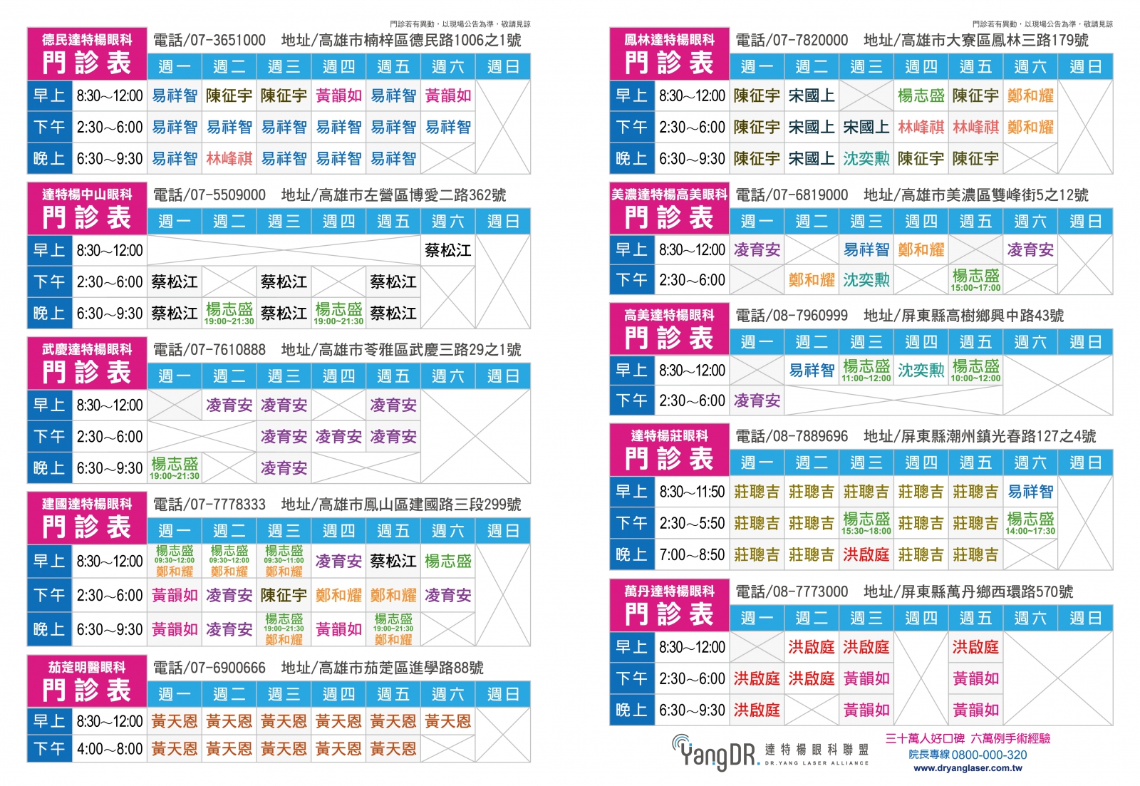Home最新消息院所公告 2026-01-01 院所公告達特楊1月份一覽門診表 分享到Facebook 分享到LINE 複製此頁連結 ※ 門診情形若有異動,以現場公告為主,敬請見諒 ※ 2025-12-26 😱 飛蚊症別輕忽!中年男視力一度剩0.1,差點失明⚠️ BACK